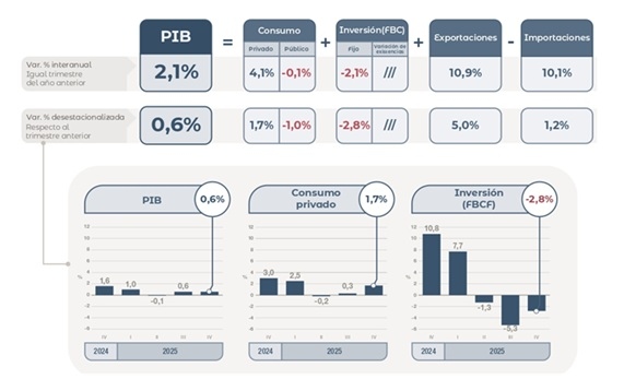 En paralelo, el consumo público registró una leve contracción del 1,0%, en línea con un proceso de ordenamiento fiscal. Lejos de constituir un factor negativo en términos estructurales, esta dinámica refuerza la consistencia macroeconómica, al contribuir a la reducción de desequilibrios y generar un entorno más previsible para las decisiones de inversión y consumo del sector privado.