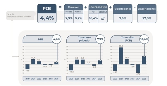 En síntesis, el crecimiento del 4,4% en 2025 no solo marca un punto de recuperación, sino también el inicio de una etapa en la que la economía comienza a sentar bases más sólidas para un desarrollo sostenido, apoyado en una mayor diversificación de sus motores y en una mejora gradual de sus fundamentos macroeconómicos.