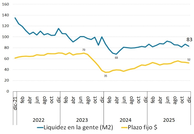 El 2025 fue un año más normal. El dólar oficial pudo crecer sin atizar la inflación y la gente volvió a creer en el peso argentino. El tema es que la credibilidad en la moneda local es todavía incipiente y no se sabe cuánto más da como para expandir la base monetaria. Esta es la razón de fondo por la cual el Banco Central todavía no se anima a salir a comprar dólares para engrosar las reservas.